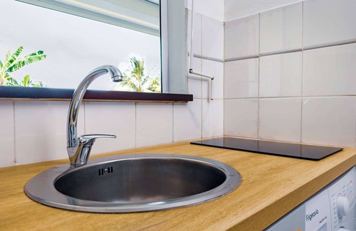 En este apartamento podrás relajarte en la piscina compartida o tomarte algo en el porche o patio hawaiano. Para cambiar un poco, entra y disfruta del wifi y de la televisión.