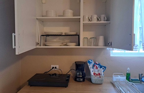La cocina básica está equipada con placa de cocina y frigorífico, además de cafetera y tetera, microondas y utensilios de cocina. El cuarto de baño incluye toallas, papel higiénico y jabón. Otras comodidades incluyen ropa de cama, aire acondicionado y una mesa de comedor.