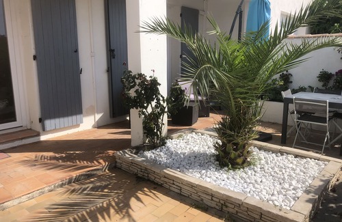 Comfortable apartment with courtyard close to the center and beach. Se encuentra en Saintes-Maries-de-la-Mer. Comfortable apartment with courtyard close to the center and beach. ofrece alojamiento, con Frente al mar, Barbacoa/Cocina al aire libre, Niño amigable, Entre otras comodidades. Estas características Apartamento Frente al mar, Barbacoa/Cocina al aire libre, Niño amigable, Para que su estadía sea cómoda.