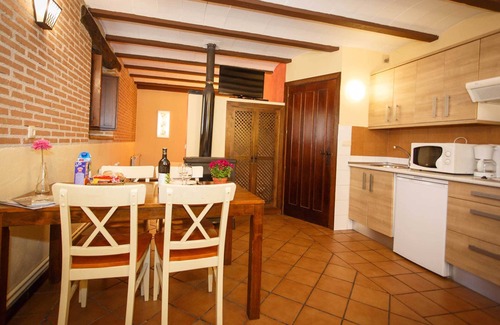El apartamento C se encuentra en la planta baja de la casa. Tiene un salón comedor con chimenea de leña y TV de 32´con Netflix, cocina completa, un baño con ducha y un dormitorio con cama de matrimonio.