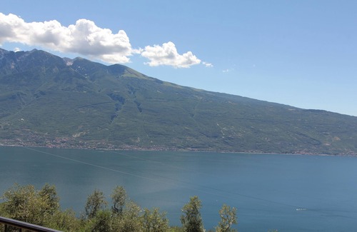 Debido a su ubicación única, la vista se sumerge en el verde de los olivares y el azul del lago, que se mezcla con el azul cielo del horizonte en Sirmione. Déjese encantar por la belleza del lago de Garda con una copa de vino tinto en el amplio balcón y disfrute de esta vista única que ocupa 2/3 del lago.