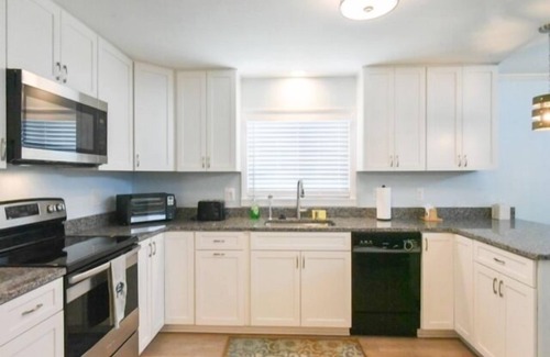3 dormitorios, 2 baños completos, ubicado en la comunidad de Montego Bay, en la calle 130 y junto a la bahía, con acceso a 2 grandes piscinas comunitarias al aire libre, instalaciones de canchas de tenis, senderos para caminar y trotar, paseo marítimo de pesca y pesca de cangrejos y marcha atrás hacia North Side Park donde ¡puedes encontrar parques infantiles, campos de pelota y senderos para correr! Cocina completa con lavavajillas, lavadora / secadora, aire acondicionado centralizado, WiFi, entrada de auto, sala de estar extra grande, televisión de pantalla plana, gran mesa de comedor. ¡Conveniente centro comercial al frente de la comunidad con supermercado, tiendas de conveniencia y restaurantes!