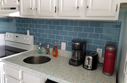 Compramos este condominio 2016. Quitamos toda la alfombra y agregamos piso de baldosas en todo el condominio. Quitamos todos los papeles pintados y pintamos todas las habitaciones. Compramos 2 nuevos juegos de cama de tamaño completo y un nuevo sofá cama Queen. Cargado con varias comodidades y servicios que incluyen aire acondicionado, 2 ventiladores de techo, 2 televisores grandes de pantalla plana, cable. Lavadora / secadora apiladas, cocina totalmente equipada con encimera de granito, placa para salpicaduras nueva, cafetera, microondas, tostadora, estufa, lavavajillas, refrigerador.