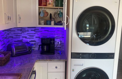 Este alojamiento de 1 dormitorio y 1 baño cuenta con una zona para barbacoas y aire acondicionado. El cuarto de baño incluye un secador de pelo, toallas y papel higiénico. La cocina está equipada con horno, placa de cocina y frigorífico, además de cafetera y tetera, hervidor eléctrico y máquina de hielo. Y gracias a la lavadora y la secadora, podrás viajar con poco equipaje.