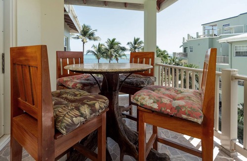 Con elegantes muebles, exquisitos azulejos y hermosas maderas locales, este condominio con vista al mar de dos dormitorios y dos baños es un perfecto "hogar lejos del hogar". El dormitorio principal tiene un elegante baño en suite con una gran ducha. El segundo dormitorio también tiene un baño en suite con plato de ducha. Una cocina completa con electrodomésticos de acero inoxidable es una excelente opción si decide cocinar en casa. Disfrute de las amplias vistas del mar Caribe desde el amplio patio que incluye una mesa y sillas.