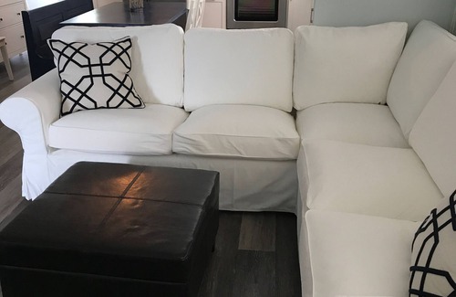 Los arreglos para dormir se pueden configurar como una cama King o dos camas individuales en una habitación y una cama King en la habitación principal. Una cuna o un colchón de aire doble está disponible para un niño o un quinto huésped que se instalará en el dormitorio principal. ¡Ofrecemos ropa de cama y toallas! El baño completo es una combinación de bañera / ducha.