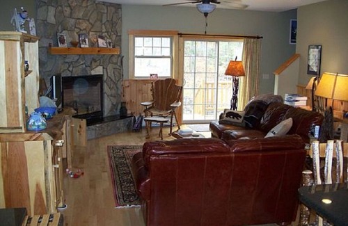 Black Bear Ski Condo en Sugarloaf Ski Area en Maine. El condominio tiene tres pisos, tres dormitorios (un dormitorio principal y baño con cama king size, y dos con literas dobles sobre camas completas, y un sofá cama Queen desplegable en la segunda sala familiar). El condominio tiene cuatro baños completos, una cocina comedor completa con una mesa para ocho y un bar con capacidad para cinco. El condominio tiene dos habitaciones familiares (una con mesa de ping pong) y la otra con una chimenea de gas de piedra de campo a piso y techo y puertas corredizas de vidrio que conducen a una cubierta. Hay una entrada con asientos para ponerse y quitarse las botas y un área de almacenamiento interior para esquís. El condominio está bellamente amueblado con muebles de madera en vivo creados por artesanos locales, muebles de cuero y televisores de pantalla plana. El condominio se encuentra a muy poca distancia a pie de los telesillas Birches y Snubber, restaurantes, club de salud y piscina, además de estar en el servicio de transporte. El condominio cuenta con televisión por cable, wifi, lavadora y secadora, y servicios telefónicos.