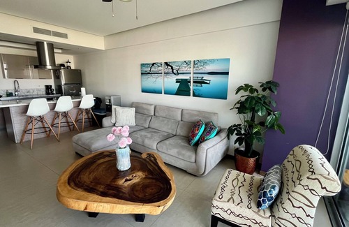 Vive el máximo nivel de confort frente al mar en Península Nuevo Vallarta. Este moderno condominio de 2 recámaras y 2 baños ofrece impresionantes vistas panorámicas a la Bahía de Banderas desde una amplia terraza privada: el espacio ideal para relajarte desde el amanecer hasta el atardecer.