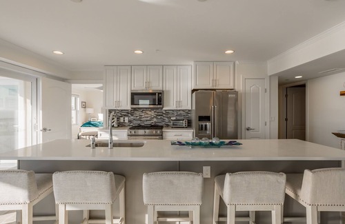 ¡GUAUU! ¡Eso es lo que dirá cuando camine en este hermoso condominio de 3 habitaciones, 2 1/2 baños, NUEVO, ubicado directamente frente al mar en la bahía de Rehoboth! Desde el momento en que entras, te darás cuenta de lo afortunado que eres, ¡ya que solo unos pocos experimentarán esta vista! Con una encantadora decoración con sabor a playa y muebles cómodos, disfrutará de un dormitorio principal con una cama King size, un segundo dormitorio con cama queen y un tercer dormitorio que ofrece una litera Pyramid con cama doble en la parte inferior y dos camas individuales en la parte superior más un nido doble adicional. Hay un sofá cama queen en la sala de estar que proporciona un espacio adicional para dormir. ¡La cocina de vanguardia ha sido bien equipada para cualquiera que disfrute cocinar y una isla muy grande con capacidad para 6 personas para acompañar al cocinero! El complejo ofrece piscinas cubiertas y al aire libre, fogatas, parrillas a gas, elementos de agua en la terraza de la azotea para que usted y sus invitados disfruten también, pero confíen en mí, será difícil abandonar la cubierta de su unidad, ya que también ofrece un oasis eso es privado solo para tu fiesta. ¡Vacaciones en su máxima expresión!