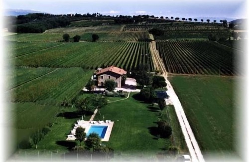 Enmarcado por las colinas de viñedos y una característica, encantador paisaje de Umbría. La vista desde la casa se encuentra en los viñedos de Fattoria Spinola y en la distancia de Perugia y Torgiano.