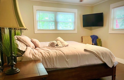 En esta casa de vacaciones que acepta mascotas podrás disfrutar del kayak, de paseos para ver animales salvajes y de mucho más a muy poca distancia. El alojamiento dispone de aparcamiento en las instalaciones, así que olvídate de tu vehículo y da un paseo hasta Bosque nacional Chattahoochee. También estarás a 3min en coche de Parque estatal Black Rock Mountain.