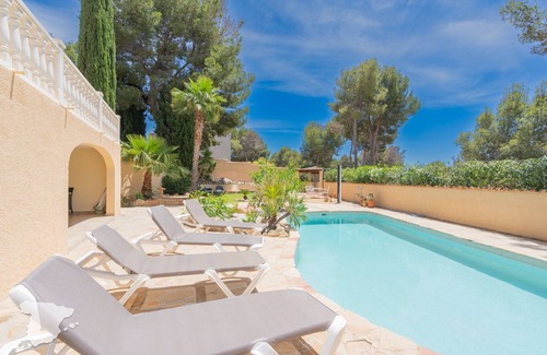 Una villa de vacaciones española en Benissa Costa, Costa Blanca para 9 personas, con 5 dormitorios y 3 baños.