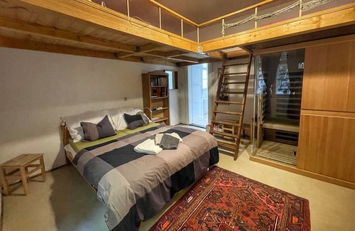 "Family & bike + sauna", 2-room apartment 65 m2 on 1st floor. Living/sleeping room with 1 bed, 1 double bed, dining table and satellite TV. 1 room with 1 double bed. Open gallery with 2 sleeping facilities. Kitchen (oven, dishwasher, 4 ceramic glass hob hotplates, kettle, microwave, freezer) with dining table. Shower, shower/WC, sep. WC with corner bath, Sauna. No view. Facilities: Internet (WiFi, free). Reserved parking at the house. Please note: suitable for families apartment courtyard side. Non-smokers only. Available: cellar. Instead of an enclosed bedroom, some sleeping areas are located in an open-plan area (gallery, alcove, etc.).