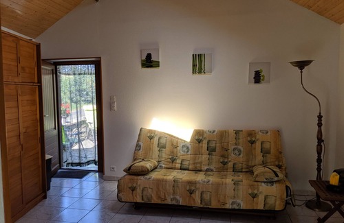 Se alquila estudio de 30m2, 2 personas, nuevo estado, equipado en una dependencia de una antigua granja. Cocina incorporada con 2 quemadores, nevera, microondas, horno pequeño; Sofá cama muy cómodo, TV vía satélite, acceso a internet, radio CD, baño con ducha, calefacción, terraza con mesa de bistro, sillas y sillones.