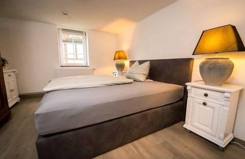 Welcome to our country house at the castle park. Spend a wonderful time with us with your loved ones. We can accommodate up to 25 people. Being together and being able to retreat to one of the three apartments if necessary is our concept for the Landhaus am Schloßpark. The Landhaus am Schloßpark consists of the apartments Fewo1, Fewo 2, Fewo 3 and Fewo 4 am Schloßpark. The apartments are described in the individual advertisements. The meeting point for everyone is the living-dining room in Apartment 4. Two large tables can accommodate 25 people for a cozy get-together. There are 2 indoor saunas and one outdoor sauna available. The outdoor area is available for a successful barbecue evening.