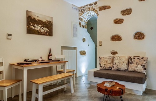 The country house Marina's Traditional Stone House in Naxos is the ideal accommodation for a relaxing holiday with a mountain view. The 41 m² property consists of a living room, a kitchen, 2 bedrooms and 1 bathroom and can therefore accommodate 4 people. Additional amenities include Wi-Fi, a TV as well as air conditioning.