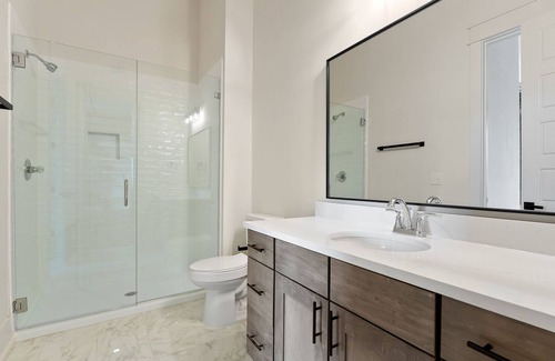 The fully equipped kitchen is a culinary enthusiast's dream, featuring modern appliances including a refrigerator, microwave, dishwasher, stove, and oven. You'll find all the necessary cooking basics, dishes, and utensils to whip up your favorite meals. Enjoy your coffee in the morning with the provided coffee maker and complimentary coffee.