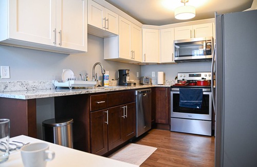 Este alojamiento de 2 dormitorios y 1 baño cuenta con una sala de estar, aire acondicionado y escritorio. Disfruta del wifi gratis y de la televisión. El cuarto de baño incluye un secador de pelo, toallas y papel higiénico. La cocina está equipada con horno, placa de cocina y frigorífico, además de cafetera y tetera, máquina de hielo y microondas. Y no tendrás que llevarte ropa de más, porque podrás aprovechar la lavadora y la secadora. Otras comodidades incluyen ropa de cama, una tabla de planchar, calefacción y una silla de oficina.