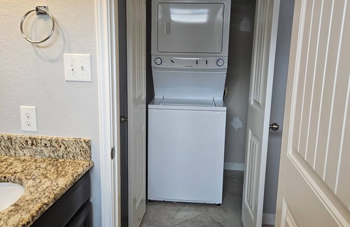 Al instalarte en este alojamiento de 1 dormitorio y 1 baño, encontrarás una sala de estar, aire acondicionado y dispensador de agua. Conéctate al wifi gratis, o relájate frente a un Smart TV. El cuarto de baño incluye un secador de pelo, toallas y jabón. La cocina está equipada con frigorífico y lavavajillas, además de cafetera y tetera, máquina de hielo y microondas. Y no tendrás que llevarte ropa de más, porque podrás aprovechar la lavadora y la secadora. Otras comodidades incluyen servicio de limpieza disponible a petición, calefacción, cambio de toallas a petición y cambio de sábanas a petición.