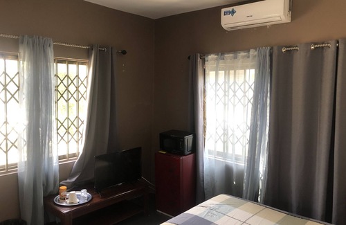 Esta casa de vacaciones de 1 dormitorio y 1 baño está ubicado en Acra, una ubicación ideal para explorar los alrededores. A los amantes de la naturaleza y el aire libre les encantará estar a 10min en coche de Laboma Beach y a 11min de Playa de Labadi. Puedes conducir 20min hasta Playa de Teshie o 10min hasta Calle comercial de Oxford Street.