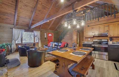 Cozy Pocono Mountain Rustic Log Cabin with Woods View, Loft King Bed Se encuentra en Tobyhanna. Cozy Pocono Mountain Rustic Log Cabin with Woods View, Loft King Bed ofrece alojamiento, con Balcón/Terraza, Actividades deportivas, Ropa de cama/Ropa de cama, Entre otras comodidades. Estas características Cabina Balcón/Terraza, Actividades deportivas, Ropa de cama/Ropa de cama, Para que su estadía sea cómoda.