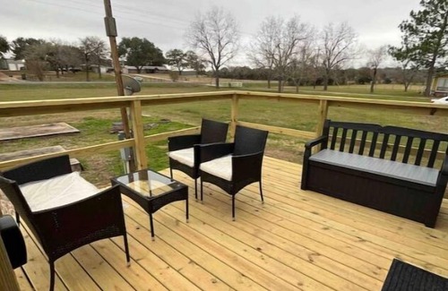 Cozy tiny house on a farm with a large deck to watch the sunrise and sunset.! Se encuentra en Brenham. Cozy tiny house on a farm with a large deck to watch the sunrise and sunset.! ofrece alojamiento, con Lavandería, Aire acondicionado, Balcón/Terraza, Entre otras comodidades. Estas características Apartamento Lavandería, Aire acondicionado, Balcón/Terraza, Para que su estadía sea cómoda.
