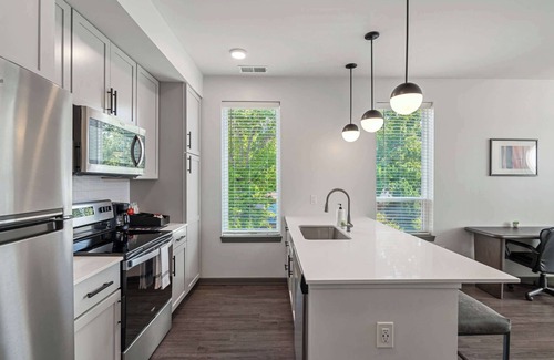 Our spacious one bedroom apartment features inviting living areas, fully-equipped kitchens, and bathrooms complete with toiletries. Throughout your stay, enjoy access to the building's fitness center and working lounge.