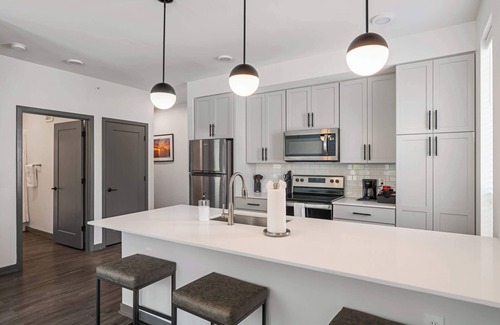 Our spacious two bedroom apartment features inviting living areas, fully-equipped kitchens, and bathrooms complete with toiletries. Throughout your stay, enjoy access to the building's fitness center and working lounge.