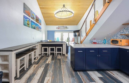 This beautiful Third Floor (top floor) beachfront vacation rental sleeps up to 7 guests and is available Saturday to Saturday for 7 Night Rentals. All renovations have been extensive in order to provide guests with all the comforts of home. The gourmet kitchen has been designed to provide plenty of room to prepare your favorite meals including a KitchenAid under-counter ice machine. Beach Service is included and provides two chairs and one umbrella per day March 1st through October 31st. First Level: Living Room with oversized Pottery Barn sectional and Balcony Access, Kitchen, Dining, King Bedroom with Walk-In Shower, Stackable Washer and Dryer. Second Level: King Loft Bedroom with Walk-In Shower, Full Sized Desk, Bunk Room with One Double Bed, One TwinXL Bed.Parking for two vehicles only. No boats, trailers, campers, RV’s, motor homes, jet-skis. GOLF CARTS OK!