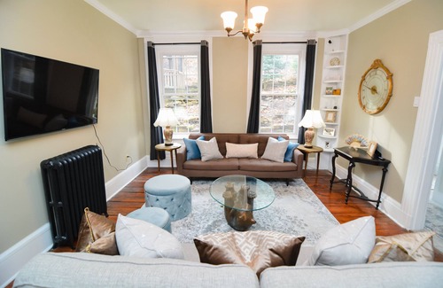 Bienvenido a la casa del oso en Broadway. La renovación está en progreso y las reservas comienzan en abril. ¡Das Bärenhaus es la casa más antigua sin cambios en Jim Thorpe! Mantenemos la elegancia del viejo mundo pero agregamos muchos elementos modernos para mantener actualizado el espacio. Ubicada a solo minutos del museo de la mansión Asa Packer, a una cuadra de la ópera, y a 3 millas de las cataratas Glen Onoko, esta casa está idealmente ubicada y se puede caminar a la totalidad de Jim Thorpe.
