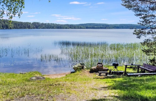 81 km northwest of Jyväskylä, Lake Iso-Löytänä 20 m, shallow sandy beach, no pier, rowing boat.