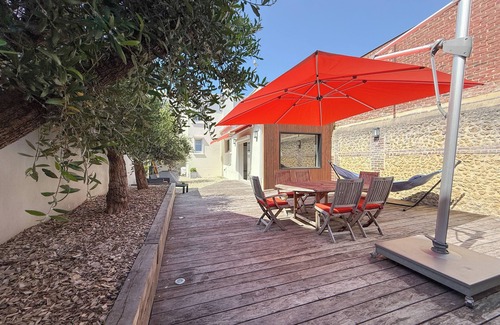 - Muy bonita casa de pueblo de 250m2 incluyendo 120m2 de terraza / patio recientemente renovada. Ubicación excepcional en el centro de la ciudad (justo al lado de la Place du Marché / Place Morny). Patio / terraza muy grande en madera exótica soleada, sin vecinos y vallados.