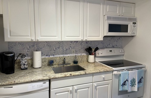 Este espacioso condominio tipo estudio, Unit K-107, tiene aire acondicionado central en todas partes, capacidad para 4 personas con una cama Cal King y un sofá cama Queen. Cuenta con una cocina completa mejorada, mostradores de granito, baño actualizado, lavadora y secadora, lanai privado, televisión por cable gratis y WiFi gratis, y estacionamiento muy conveniente. Disfrute de cualquiera de las 3 piscinas y 4 parrillas de gas junto a la piscina.
