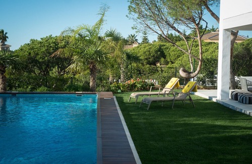 Tal y como sugiere su nombre, en Del Sol todo gira entorno al sol: el sol de la mañana colándose en tres de los cinco dormitorios, las vistas de la puesta del sol sobre el Atlántico desde los otros dos dormitorios, el sol de la tarde reflejado en el mar visto a través de los pinos desde el comedor exterior, y para aquellos verdaderos “amantes” del sol, un solarium en la azotea desde la que disfrutar del sol a todas horas, además de las impresionantes vistas del mar y de los pinos. Pero, por supuesto, Del Sol es todavía mucho más: sendero privado hasta la playa (150m), muchísimo espacio (230m2, incluyendo una zona de estar diáfana de 70m2), una bonita fusión entre el estilo andaluz y el moderno en la decoración, las mejores terminaciones posibles (electrodomésticos Miele, camas King-size, duchas de lujo….) y el sonido de las olas rompiendo en la playa.