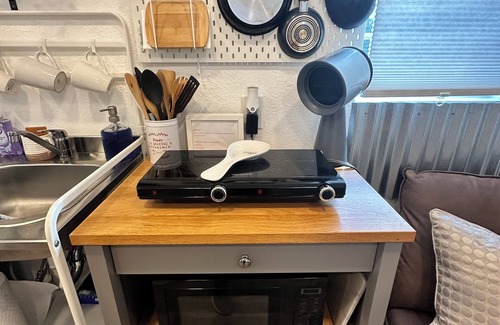 Cozy cabin in Lakehills with 1 bedroom featuring a full size bed. The quaint living room also has an additional full size air mattress bed for extra sleeping space. Enjoy the excellent heating and AC, along with convenient amenities a full size kitchenette with free coffee. The bathroom is equipped with a hair dryer, towels as well. We think our place will help you experience everything Lakehills has to offer.