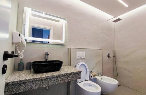 Deluxe Family Room Se encuentra en Vlore. Deluxe Family Room ofrece alojamiento, con Balcón/Terraza, Ropa de cama/Ropa de cama, Instalaciones de bienestar, Entre otras comodidades. Estas características Villa Balcón/Terraza, Ropa de cama/Ropa de cama, Instalaciones de bienestar, Para que su estadía sea cómoda.