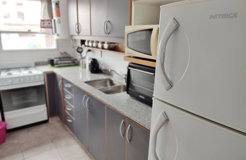 También hay una cocina completamente equipada, con horno a gas, heladera grande, horno eléctrico, microondas, pava, y todos los utensilios y elementos necesarios.