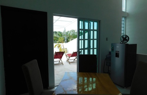 QUEDATE EN ESTA COMODA ESTANCIA TOTALMENTE EQUIPADA PARA TUS NECESIDADES, ADEMAS DE SER FRESCA Y CONTAR CON UNA AMPLIA TERRAZA