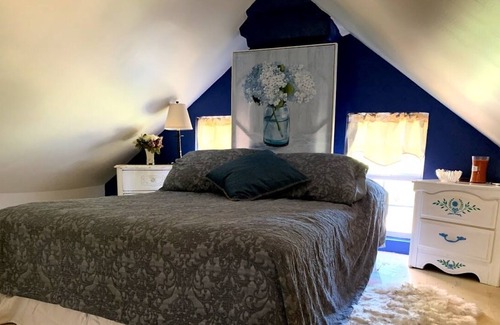 FULL FURNISHED STUDIO ON THE 3 FLOOR: Conveniently located just 10 minutes from Peddlers Village, less than 10 minutes from downtown New Hope / Lambertville and just moments from Stockton, NJ, this is your home away from home situated on a serene 10+ acres of peaceful, open land that is farmed with crop from the Spring through the Fall. Looking for a place to get together with family during a wedding weekend? We're conveniently located 5 minutes to the George School, and less than 12 minutes from Holly Hedge Estates and Centre Bridge Inn and less than 15 minutes from Hotel Du Village and Peddlers Village, 10 minutes from the Bucks County Playhouse in New Hope, making our home the perfect place to stay when in town for a wedding! Our beautiful spacious room is immaculate clean and come with a gorgeous fireplace, living room, smart tv, free wifi, free private parking, ,lush garden, grill, comfortable full side bed and a single bed, that can accomodate 1 to 3 people, heater, iron, coffee maker, full use of kitchenware guests can cook their own meals, private entrance. hairdryer, hangers,shampoo, towels,added benefit to the house is the lovely backyard with a pergola, outdoor sitting area, refrigerator,