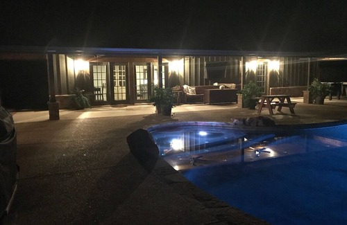 La casa de la piscina ElKen Retreat es un espacio separado detrás de nuestra casa. Las puertas dobles se abren a la piscina y la cascada para un buen trato :) Tiene una pequeña sala de estar y una pequeña cocina con refrigerador, microondas y café Keurig. Ofrecemos 2 maravillosas camas Twin, un sofá cama completo y también tenemos 2 colchones Serta en cunas que se pueden llevar a la habitación a pedido (tarifa adicional para más de 2 personas).