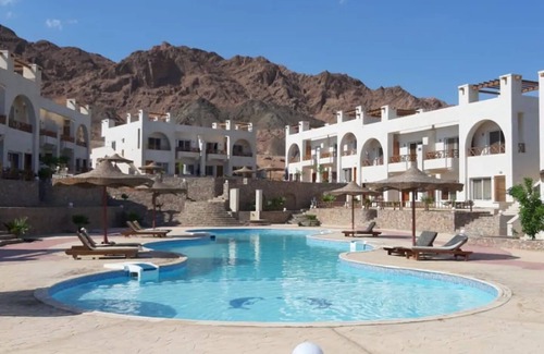 Disfrute de la impresionante vista de la montaña, el mar y la piscina. | Apartamento en Dahab