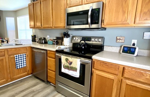 Al instalarte en este alojamiento de 2 dormitorios y 2 baños, encontrarás una sala de estar, un comedor, chimenea y aire acondicionado. El cuarto de baño incluye un secador de pelo, toallas y papel higiénico. Prepara una comida casera en la cocina, equipada con horno, placa de cocina y frigorífico, además de cafetera y tetera, máquina de hielo y microondas. Podrás viajar con poco equipaje, porque tendrás una lavadora y una secadora a tu disposición.