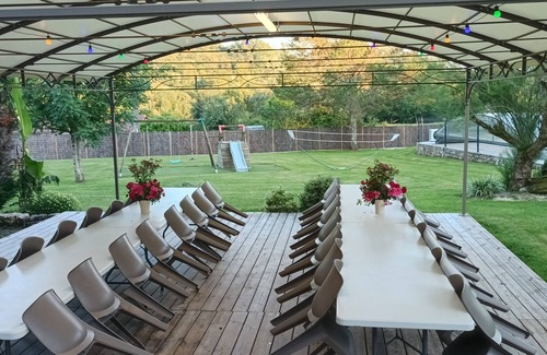 Gran pérgola exterior cubierta, ideal para cenas o veladas al aire libre