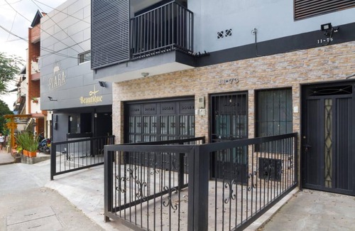 Dos habitaciones, dos jacuzzis, aire acondicionado, seguridad en la noche, un área de trabajo común para trabajar desde el lobby. Enchufes USB. Buen sistema de agua caliente. Lavavajillas, lavadora y secadora compartidas. Dos camas queen. Cada habitación tiene una bañera de hidromasaje combinada. Todos los restaurantes están justo al lado de tu puerta. Exito está a dos cuadras, metro 4, lleras 15 minutos a pie o $ 2 en taxi. Puede tener invitados sin cargo pero necesita una cédula o pasaporte.