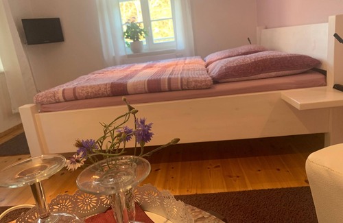 Double room 5 - Loensches Gut Se encuentra en Biesnitz. Double room 5 - Loensches Gut ofrece alojamiento, con Chimenea/Calefacción, Niño amigable, TV, Entre otras comodidades. Estas características Cabaña Chimenea/Calefacción, Niño amigable, TV, Para que su estadía sea cómoda.