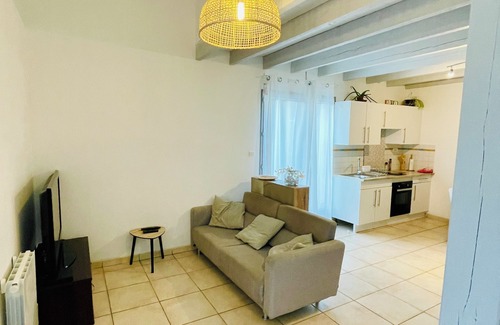 Le logement, pouvant accueillir jusqu’à 4 personnes, dispose d’un séjour avec cuisine équipée ouverte, d'une salle d’eau, d'un WC séparé, d'un coin salon avec canapé, TV et jeux de société, ainsi que d'une chambre spacieuse de 20 m² à l’étage (avec un lit double et un BZ).