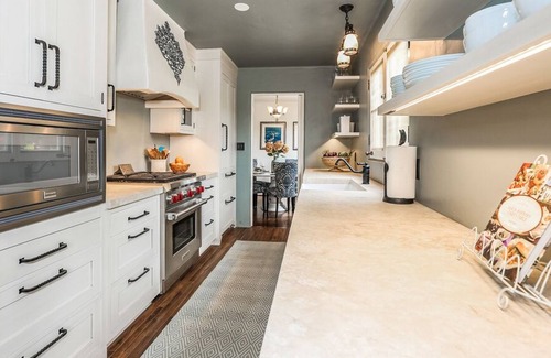 Durante el proceso de restauración de un año de la casa de esta década de 1930, todas las superficies, accesorios, ventanas y puertas se restauraron meticulosamente para mantener el carácter auténtico, adecuado para esta propiedad histórica. Ningún detalle ha sido pasado por alto. Los coloridos azulejos auténticos, las superficies pintadas a medida, el arte fotográfico vintage, los herrajes de bronce restaurados, las ventanas originales y los detalles de lujo llenan todos y cada uno de los espacios. Con un ojo de diseñador para patrones y texturas únicos, los muebles caprichosos con tonos marroquíes agregan encanto juguetón y sofisticación única.