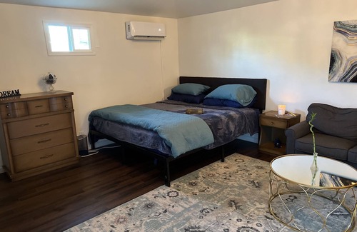 Al instalarte en este alojamiento de 1 dormitorio y 1 baño, encontrarás un sofá cama, una zona para barbacoas, aire acondicionado y escritorio. El cuarto de baño incluye un secador de pelo, toallas y papel higiénico. La cocina está equipada con placa de cocina y frigorífico, además de cafetera y tetera, hervidor eléctrico y máquina de hielo. Y como hay una lavandería en los alrededores, no necesitarás llevarte mucho equipaje.