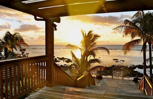 Este apartamento permite desde la planta baja tener una hermosa vista del mar azul turquesa, pero solo con una vista a la derecha del sitio. La vista completa de la playa de Tamarin siendo ocultada por la parte posterior de la villa del propietario.