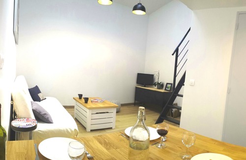 En el corazón de los puestos de un barrio, bonita casa independiente pequeña (tipo estudio de 25 m² con entrepiso grande) que puede alojar hasta 4 personas.